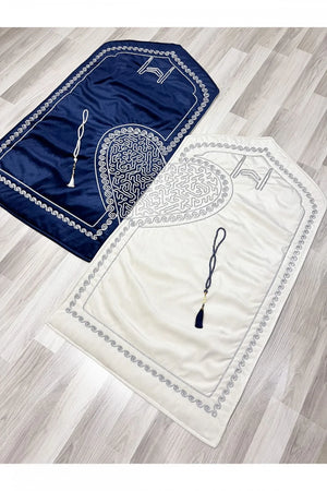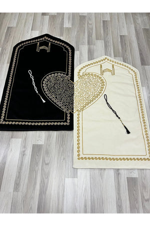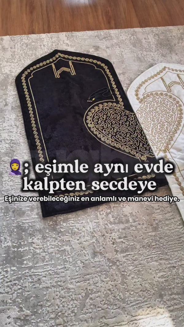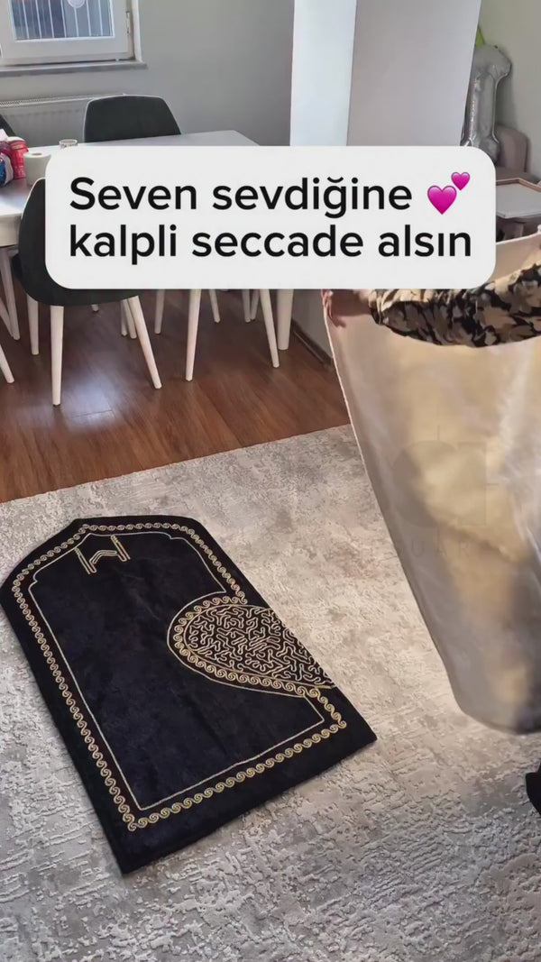 Özel günlerinize anlam katmak için özenle hazırlanmıştır. Siyah, beyaz ve lacivert rengi seçenekleriyle sunulan bu zarif seccadeler, kalp motifi ile çiftlere özel bir uyum sergiler. İsim yazdırma imkânı sayesinde tamamen kişiselleştirilebilir.